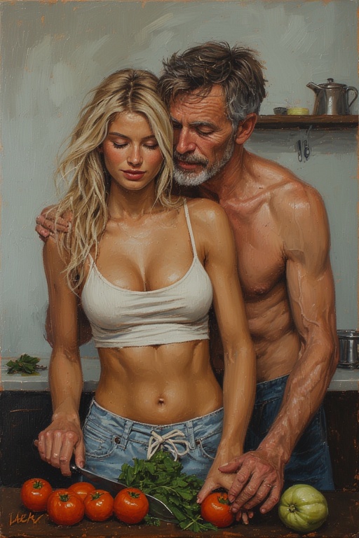 ![]() Часть 1 НАЧАЛО I Чёрная "Камри", словно крадущийся зверь, пробиралась по петляющей дороге, повинуясь холодному голосу навигатора. За рулём – Игорь, жилистый парень лет двадцати трёх, чья худоба обманчиво скрывала крепкую силу. Недавняя свадьба словно окрылила его, а Диана, его муза, сидела рядом и рисовала пальчиком узоры на запотевшем стекле. Девятнадцатилетняя нимфетка, с копной льняных волос, точёной фигуркой и вызывающе пышной грудью четвёртого размера. Дорога выматывала. Ранний подъём и однообразный пейзаж давили на обоих, словно невидимый груз. Всего пару месяцев назад Диана осиротела, потеряв отца. Разбирая его вещи, она случайно наткнулась на пожелтевшие документы о праве собственности на половину дома в дачном поселке "Юбилейный". В памяти всплыло имя дяди Гены, брата отца, живущего в этом поселке. Найдя его номер в старом телефоне отца, Диана позвонила. Дядя, обрадованный звонку племянницы, словно лучику света в его одиночестве, радушно пригласил погостить, пообещав обсудить детали наследства. Игорь, работающий удалённо, и Диана, "свободный художник", не могли устоять перед соблазном сменить обстановку, вырваться из города. Наконец, машина замерла у монументального дощатого забора. Монотонный голос навигатора констатировал прибытие. – Офигеть! – присвистнул Гарик, удивлённо разглядывая сквозь щели забора внушительный кирпичный дом, словно выросший из земли. После короткого звонка калитка скрипнула, открываясь, и на пороге возник Геннадий Владимирович. Высокий, подтянутый мужчина лет пятидесяти пяти, с заразительной белоснежной улыбкой, излучал здоровье и неувядающую энергию. – Племяшка! Сто лет не видел, какая ты у меня выросла! – воскликнул он, заключая Диану в медвежьи объятия, отчего девушка успела лишь пискнуть что-то невнятное, прежде чем её отпустили на землю. – Геннадий Владимирович! Да зовите просто Геной! – произнёс мужчина, протягивая крепкую руку Игорю. – Давайте помогу с вещами, покажу владения… А посмотреть было на что. На ухоженном участке, словно сошедшем с глянцевой картинки, помимо дома, примостилась скромная банька, пара парников, дымился мангал, а всё остальное пространство покрывал идеально ровный, изумрудный газон, явно импортного производства. Дом возвышался в два этажа. На первом этаже располагались спальня хозяина, отделанная в строгом минимализме, санузел и просторная кухня, плавно перетекающая в уютную гостиную. Второй этаж вмещал две светлые спальни и еще один санузел, что обещало гостям дополнительный комфорт. – Тут будете спать, – распахнул дядя дверь одной из комнат, впуская свежий воздух и солнечный свет. – Располагайтесь! С дороги помойтесь и спускайтесь вниз, ужин почти готов. Оставшись наедине, молодые люди в изумлении переглянулись. Никто не ожидал, что дом окажется таким просторным и ухоженным. Спальня поражала своими размерами, с огромной плазмой, словно чёрное зеркало, напротив внушительной двуспальной кровати, манящей к отдыху. Быстро ополоснувшись и переодевшись в домашнюю одежду, Диана и Игорь спустились на кухню, откуда доносились аппетитные ароматы, щекочущие ноздри. Геннадий Владимирович, неспешно потягивая чай из большой кружки, сидел за широким дубовым столом, накрытым белоснежной скатертью. Жестом пригласил их присоединиться к трапезе. Пока молодожены с ап