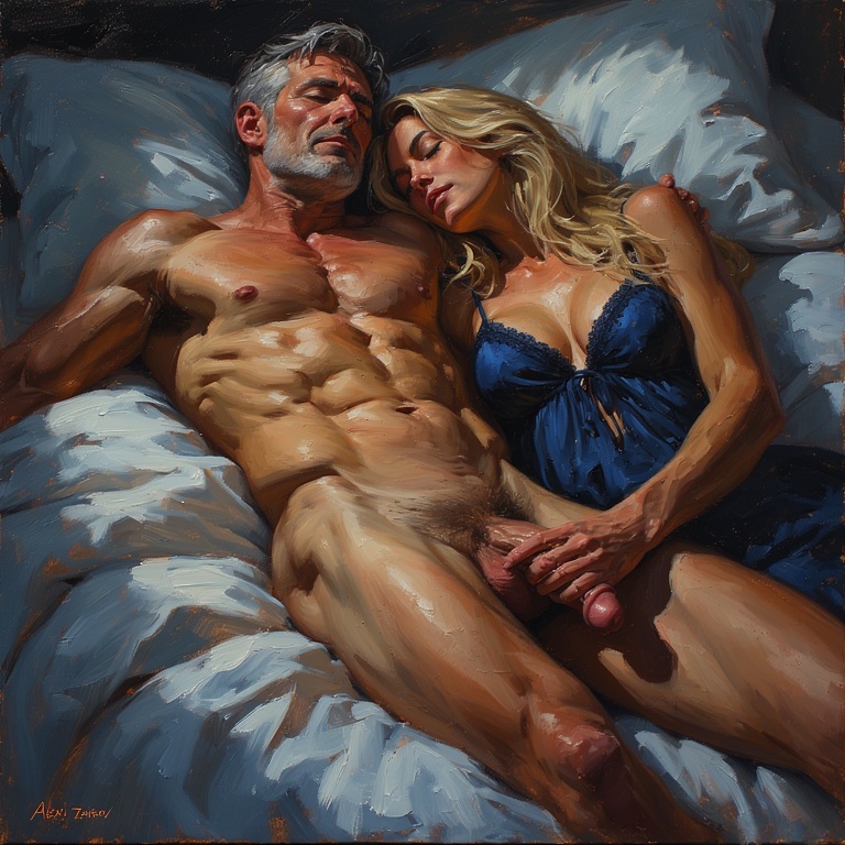 ![]() 2. Первые съемки I Уже на следующее утро Игорю нужно было с головой окунуться в работу, и времени для Дины почти не оставалось. Она принесла ему завтрак прямо в комнату и робко спросила, сможет ли он выбраться с ними на пруд. — Прости, солнышко, боюсь, я тут до вечера застряну, - развел он руками, чувствуя вину. — Ну ладно, мы, наверное, ближе к обеду пойдем, когда вода прогреется… С нами еще Виктор собирался, если вырвешься, присоединяйся, - Дина оставила легкий поцелуй на его щеке. Чудеса не случаются, и по пыльной тропинке к прудам в этот раз шагали Гена, Виктор и, чуть впереди, Дина. У общественного пруда Витя вдруг замер, пошевелил усами и многозначительно взглянул на Геннадия: — Слушай, народу почти нет, может, на дальний не пойдем? Тут останемся? — Да я тоже так думаю, Дин! Эй, стой! Пойдем на этот пляж, тут почти никого! И вправду, единственной, кто здесь был, оказалась женщина лет тридцати, рядом с которой в песке копошился мальчик лет пяти. — В гости, что ли, к кому приехали? - задумчиво пробормотал Виктор. – Ладно, пошли купаться, пока солнце в зенит не вошло! За ничем не примечательными разговорами они окунулись в воду, а потом еще раз, и вода показалась теплее, чем в прошлый поход на пруд. Пролежав на полотенцах около получаса, дядя Витя, крякнув, поднялся: — Пойду, познакомлюсь, - кивнул он в сторону женщины с ребенком. – Может, подскажу чего или помощь нужна. — Ну давай, давай, помоги, "волонтер", - прищурившись, отозвался Гена. Усатый толстячок устремился к своей цели, а Дина решила немного побольше узнать о своем дяде и засыпала его вопросами о прошлом, о сыне, о том, где он познакомился со своей женой и все в таком духе. Так, загорая и болтая обо всем и ни о чем, они коротали время. — Дин, прости меня, дурака старого, что я вам условия ставлю, не обижайся, мне правда тяжело очень. Сегодня еле уснул, всё винил себя, что чуть вас не рассорил… — Да ладно, дядь, я все понимаю, лишь бы Игорь понимал еще… Я правда совсем-совсем не обижаюсь, - улыбнулась Дина, стараясь приободрить его. — Спасибо, красотулечка, - приобнял он ее за плечи и смачно чмокнул в щеку. – Придешь ко мне сегодня, как договаривались? — Приду, уговор есть уговор. Значит, и Игорь согласен, и я. Кстати, а где Виктор? – неожиданно встрепенулась девушка, заметив, что его нет. Действительно, ни Виктора, ни девушки не было, и одиноко ковыряющийся в песке мальчик напоминал о том, что кто-то здесь еще был. — Оставь полотенца, пошли со мной, только тихо, - скомандовал Гена и повел ее сквозь кусты. Вскоре они вышли на узкую тропинку. — Куда мы идем? — Тссс, тише, я же попросил! – прошипел мужчина, останавливаясь и осторожно раздвигая ветки кустарника. В просвет Дина увидела крошечную полянку, метра три-четыре, в центре которой росло дерево. Облокотившись на него, стоял Виктор, запрокинув голову, а между его ног, словно маятник, двигалась голова той самой женщины. Она нежно обхватывала его член губами, двигаясь с чувственной грацией, словно танцуя какой-то древний интимный танец. Виктор издавал приглушенные стоны, его тело вздрагивало от нарастающего возбуждения Его руки утопали в ее каштановых волосах, помогая ее губам исследовать всю длину своего толстенького члена, нелепо торчащего из под внушительного пуза. Дина вспыхнула, словно маков цвет, и впала в оцепенение, не в силах пошевелиться. Гена, словно т