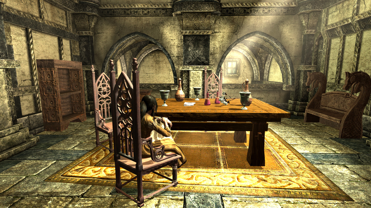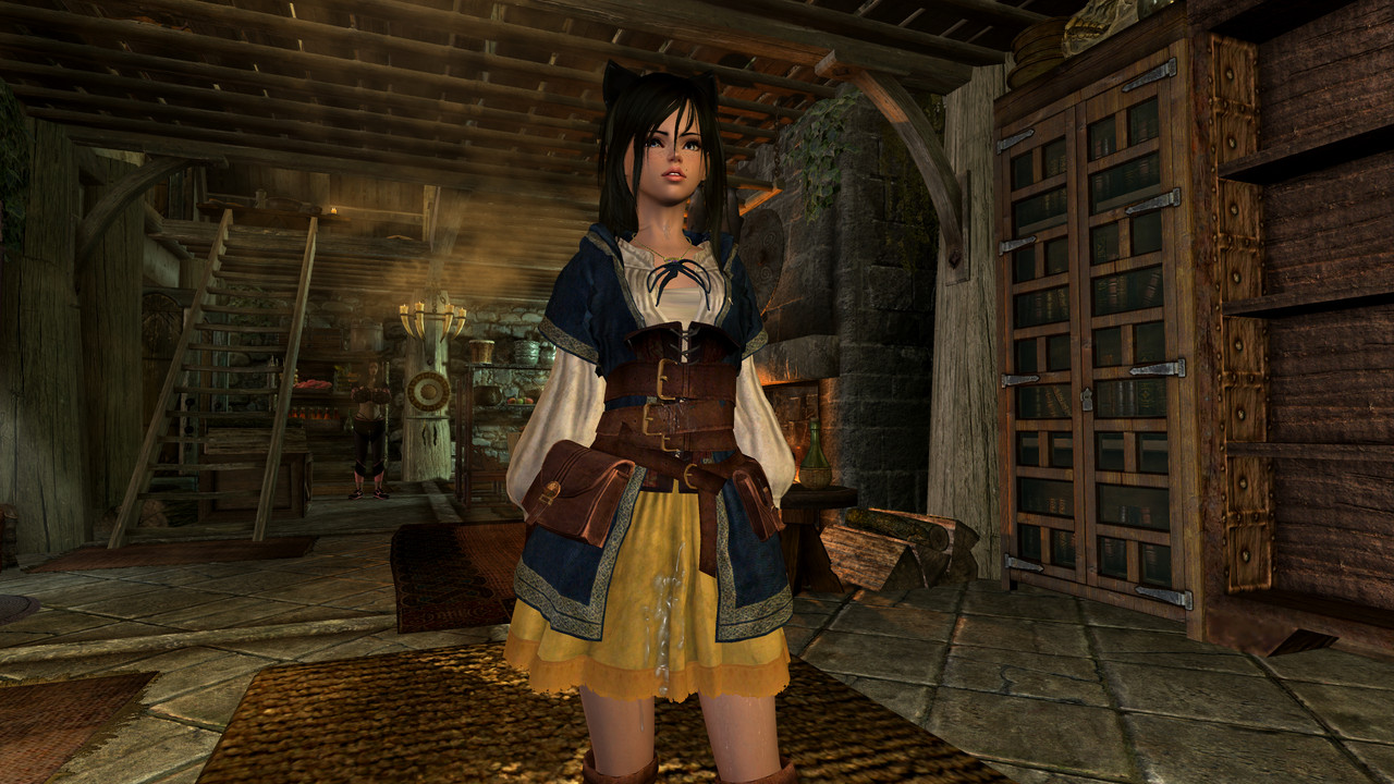 Полусонная Сакура дошла пешком до Рифтена, но в город заходить не стала. Она купила билет на дилижанс и села на самый первый, утренний рейс. Уже находясь внутри вагона, девушка уютно устроилась на своём месте с и сладко заснула. К вечеру дилижанс прибыл в Солитьюд. Сакура сняла номер в Смеющейся Крысе. Она, конечно, могла переночевать в офисе Талморского посольства, но там было пусто и одиноко. Именно сейчас Сакуре хотелось побыть там, где много людей, где весело и шумно. В её голове ещё были свежи воспоминания о вечеринке в форте Стражи Рассвета. Пожалуй её там хорошо поимели. Вагина и анус до сих пор ныли приятной болью, а во рту всё ещё ощущался вкус спермы. Сакура заперлась в своей комнате и легла спать. Ночью в её дверь кто-то постучался. Сонная девушка отрыла щеколду и удивлённо уставилась на бретонского купца, держащего в руках бутыль с дорогим вином и корзинку со сладостями. — Прости пожалуйста. - Обратился он к Сакуре. - Я видел тебя в общем зале, землячка. Ты же ведь бретонка, хоть и имеешь черный цвет волос. Мне показалось, что ты скучаешь. — И что ты хочешь от меня, земляк? — Ну, мы могли бы скоротать время вместе, если ты не возражаешь. — Разве в Смеющейся Крысе мало девок, с которыми ты мог бы провести ночь? — О... М-м-м... Это не то. Я не этого ищу. - Гость замялся. - Я пожалуй пойду. Прости, что потревожил. — Ладно, заходи. Пообщаемся. - Сакура открыла шире дверь, впуская бретонца в сою комнату. Они пили дорогое вино, одной бутылки которого не хватила, и купец сходив в низ, купил ещё пару бутылок. Сакура угощалась сладостями и непринуждённо болтала с земляком. Девушка рассказала Эвандеру, так звали бретонца, свою историю. Тот поделился с Сакурой рассказами о своих путешествиях и торговле. — А ты помнишь свой дом? Где ты жила? — Конечно помню. Мы жили совсем недалеко от моря. Точнее океана. Я любила бродить по берегу и купаться...эм-м, голышом. - Сакура смущённо засмеялась. — Ох, хотел бы я на это посмотреть! Голая девушка выходящая из воду в лучах заходящего солнца... — Ты глупый! Я же была совсем маленькая, что ты там рассматривать собрался? - Наигранно возмутилась Сакура. Третья бутылка вина её совсем раскрепостила. — А... Ну да, я об этом не подумал. - Смутился Эвандер.- Прости, пожалуйста. — Здесь не о чём извиняться. Интерес мужчины к женщине, мальчика к девочке, вполне естественная вещь. Ну и наоборот, разумеется. — Ты очень красивая. Хотел бы я посмотреть на тебя без одежды. - Едва слышно, почти шёпотом произнёс мужчина. — Здесь нет прозрачных волн и заходящего солнца... - Так же, полушёпотом произнесла девушка. - А завтра, уже на рассвете, мне надо садиться на дилижанс, и ехать в Маркарт. — Жаль. - Опечалился Эвандер. Я бы хотел с тобой искупаться в море, на закате, голышом. Но надеюсь, мы когда-нибудь увидимся вновь, и у нас будет больше времени. — Зачем ждать? - Спросила Сакура, скидывая со своего голого тела ночной халат. — Ох... Ты так прекрасна!.. Я не верю своим глазам, что вижу это. — Чего же ты ждёшь, дурачок? У нас не так много времени...