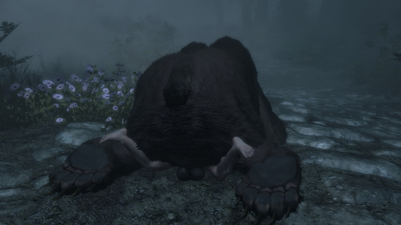 *** Барбас проводил Сакуру до ямской станции Маркарта. Они тепло расстались, и девушка заспешила на поиски Гунмара. Точное местоположение этого норда, посвятивешего свою жизнь изучению и приручению диких зверей, было не известно. Но Барбас посоветовал начать поиски с края вайтранской тундры, неподалёку от Рорикстеда, так как там, на другом, более скалистом, берегу Белой реки, имелось большое количество малых и больших пещер. Эти пещеры часто были заселены горными троллями, или медведями. Гунмара Сакура встретила на третий день поисков. Могучий норд сидел неподалёку от входа в одну из пещер и сосредоточенно ковырялся в механизме медвежьего капкана. — Стой где стоишь! - Крикнул он на сакуру. - Здесь опасно. — Израну нужна твоя помощь. - Сразу перешла к делу Сакура. — Израну? Чья-то помощь? - Усмехнулся мужчина. - Вот уж не думал, что услышу такие слова. Боюсь я, он опоздал не несколько лет. Мне уже не до того, у меня другие дела. Да и вообще, он в одиночку со всем справится. Он сам меня в этом уверял. В чём ему может понадобиться моя помощь? — Мы собираем силы против вампиров. — Вампиров? Это... возможно, многое меняет. Расскажи мне о том, что происходит. — Точно не известно, но, похоже, у них Древний Свиток. — Клянусь восьмерыми... Гунмар на какое-то время задумался. Сакура огляделась по сторонам. Вокруг входа в пещеру лежали разные, обглоданные кости, в том числе и человеческие, и виднелись кучки медвежьего помёта. — Ладно, слушай, я подумаю. - Вышел из задумчивости норд. - Но нельзя позволить этому медведю и дальше губить невинных людей. Как с медведем закончу, выясню, чего от меня хочет Изран. — Нет времени ждать. Мы и так потеряли много дней. - Произнесла Сакура. - Я помогу тебе с этим медведем. Девушка сняла с себя походный рюкзачок и, глубоко вздохнув, направилась вглубь пещеры. — Ты с ума сошла? Он же растерзает тебя! - Гунмар вскочил не ноги и бросился вслед за Сакурой. — Пожалуйста, не мешай мне! - Рявкнула она таким тоном, что мужчина невольно остановился. — Ненормальная. Гунмару было немного жаль, эту юную девчонку. Да, возможно она неплохая охотница, и смелая девушка, но пойти вот так, в одиночку на свирепого хищника... Это определённо было самоубийством. Он установил капкан, приготовил охотничью рогатину и осторожно двинулся в пещеру. Каково же было удивление Гунмара, когда он увидел девушку не то что живой, а голышом стоящей на четвереньках, под огромным, косматым медведем. Медведь трахал девушку, будто это была обыкновенная самка. Сакура, почувствовав взгляд, повернула голову и, улыбаясь, подмигнула ошарашенному мужчине. Потрясённый мужчина молча вышел из пещеры. В его о мозгу навсегда запечатлилась картина неестественного соития хищного зверя и человеческой девушки.