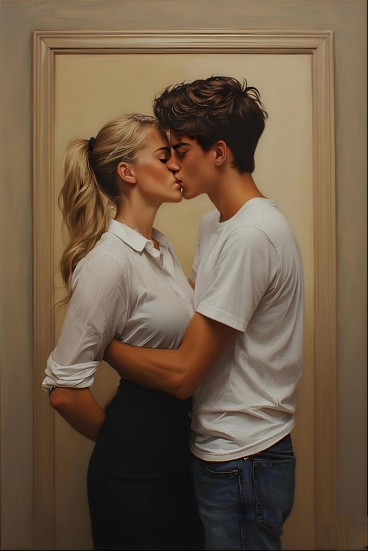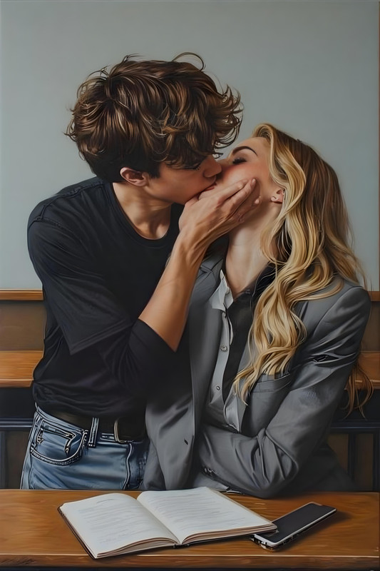 — Ммм, хорошо выглядишь, — приветствовал он, медленно приближаясь. — Для меня приоделась? Таня покосилась на него, слегка покраснев, но тут же обрубила его намёк. — Не говори ерунды. Я в том же, в чём была в школе. Только приехала. — Ну и ладно, — ухмыльнулся Денис, уже вплотную подойдя к ней. — Мне всё равно нравится. Его руки скользнули по её талии, а губы нашли её губы — сначала осторожно, потом настойчивее. Таня попыталась отстраниться, но он не отпускал, чувствуя, как её сопротивление слабеет.
