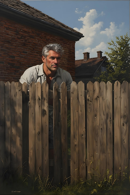 — Молодец, супер, красотка, — одобрительно кивнул Виктор. — Не стесняешься так на улице оголяться? — Ну… — она попыталась улыбнуться, но улыбка вышла натянутой. — Немного некомфортно… — Не переживай, — махнул он рукой. — До забора далеко, никто не увидит. Камера снова щёлкала, а Диана стояла, стараясь не думать о том, что кто-то всё же может заметить её в таком виде. Хотя Виктор был прав — вокруг ни души. И всё же… Она продолжала позировать, чувствуя, как тело постепенно привыкает к этому новому состоянию, что ее могут увидеть лишняя пара глаз. ****** Воздух в теплице был пропитан запахом свежей земли и молодой зелени. Геннадий ловко управлял шлангом, из которого с тихим шипением била ледяная колодезная вода. Капли, сверкая на солнце, падали на грядки с нежными ростками, а он, привычно переходя от ряда к ряду, насвистывал под нос незамысловатую песенку. Внезапно сквозь шум воды послышалась знакомая мелодия. — Телефон! Геннадий потянулся к карману, на ходу вытирая мокрые пальцы о брюки. На экране светился незнакомый номер. — Алло? — Ген! Извини, что снова беспокою… — в трубке раздался встревоженный голос Игоря. — Динка опять не берёт трубку. Ты не в курсе, всё ли в порядке? Геннадий пожал плечами, отвлекаясь от полива, и машинально бросил взгляд за забор, где начинался участок Виктора. — Ну, мы позавтракали, и я слышал, она собиралась к Виктору… — Он сделал шаг к ограде, прищурившись. — Да не переживай ты так, закончит — перезвонит… В этот момент вдали мелькнуло движение. Геннадий, прикрывал ладонью свободное ухо, чтобы лучше слышать. — Она же говорила, что Витька ненавидит, когда его отвлекают во время работы… С этими словами он подошёл ближе к забору и, перегнувшись через него, заглянул на соседний участок. И тут дыхание у него перехватило. На лужайке за домом Виктора стояла на коленях Диана. Её стройная фигура была залита палящими лучами солнца. Но самое шокирующее было впереди — она слегка отклонилась назад, и Геннадий увидел, что её обнажённая грудь, полная и упругая, выставлена перед объективом фотоаппарата. Соски, розовые от прохлады, напряжённо подрагивали, а Виктор, присев на корточки, ловил ракурс, отдавая ей команды: — Чуть выше подбородок… Да, так… Теперь руку на бедро…